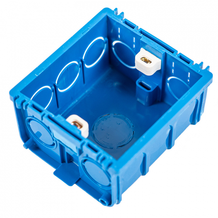 Flera ingångar så man enkelt kan dra ett elrör från valfritt håll. Funkar i både murade väggar som träväggar.