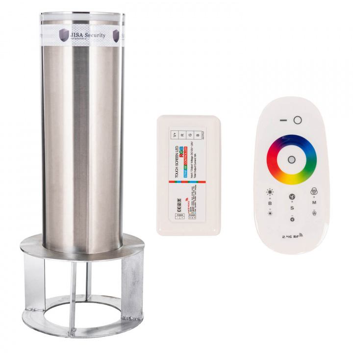 Snyggt designad fast pollare för både privatpersoner som offentlig miljö. Integrerad LED belysning (RGB) som går att sätta i valfri kulör samt ljusstyrka och kan kopplas ihop med andra fasta eller hydrauliska pollare. Förutom belysning har pollaren även en reflex för god synlighet.