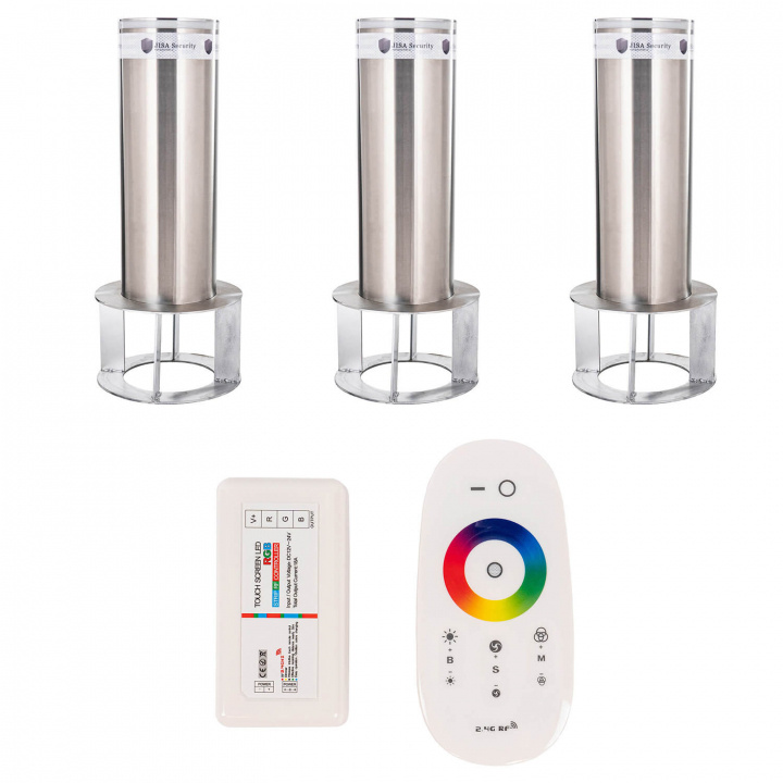Våra fasta pollare är tillverkade av rostfritt stål (304) som aldrig kan rosta. Den håller kulören och sin finish i många år. Den slimmade integrerade LED belysningen är utrustad med RGB LED, vilket innebär att du kan välja valfri kulör på din belysning. Det går även att ställa in så att belysningen har vitt sken, samt att ljusstyrkan är reglerbar.